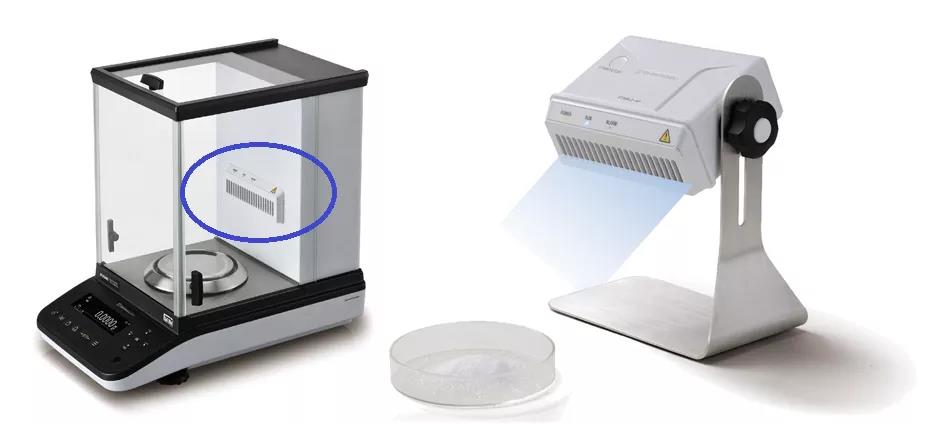 島津公司目前STABLO-AP型靜電消除器通過離子照射的方法,可以在1秒內消除粉末樣品靜電,快速解決靜電問題帶來的稱重影響。