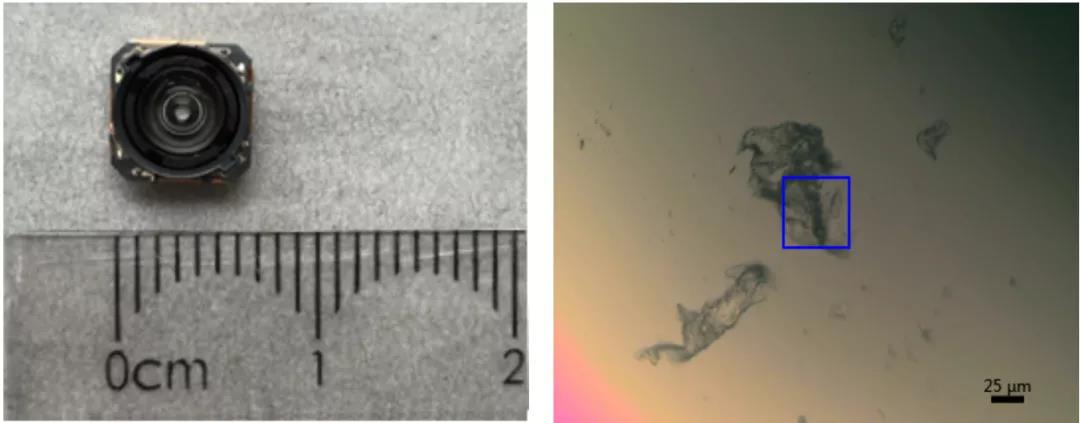 樣品1:手機鏡頭上的白色異物。